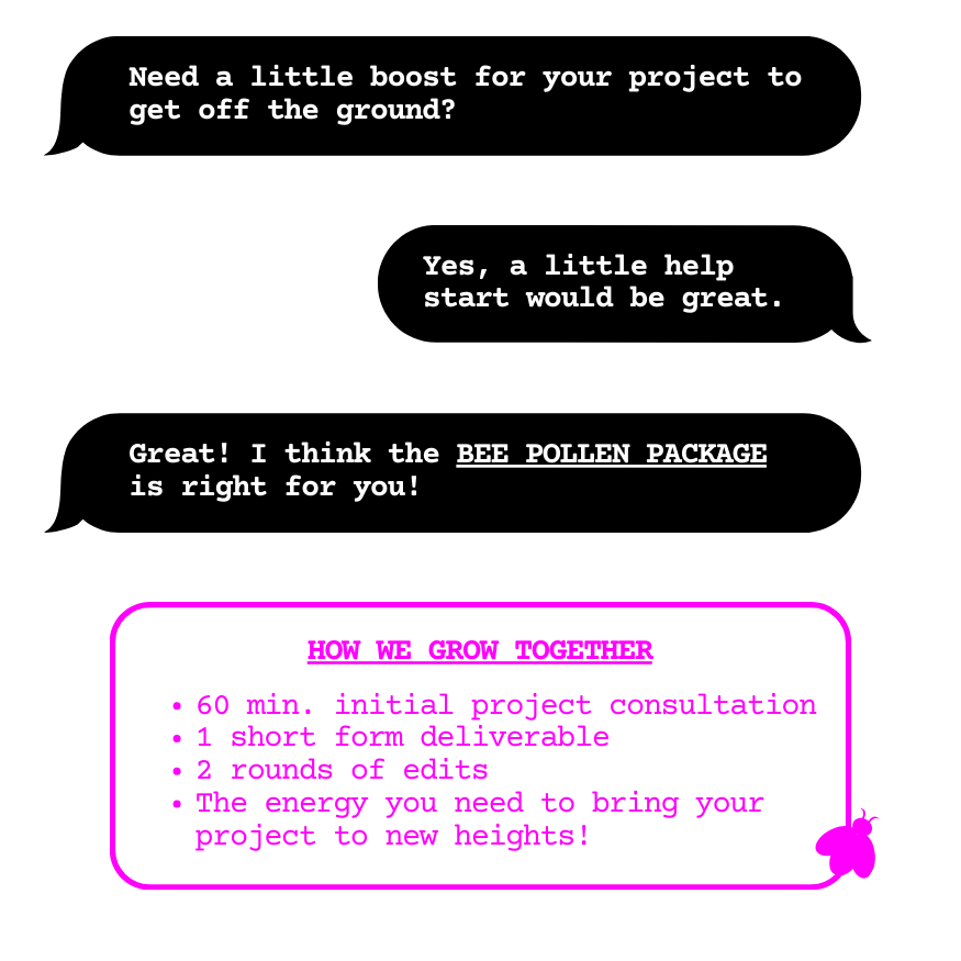 Explore the POLLINATOR PACKAGES below and choose how we bring your vision to life!